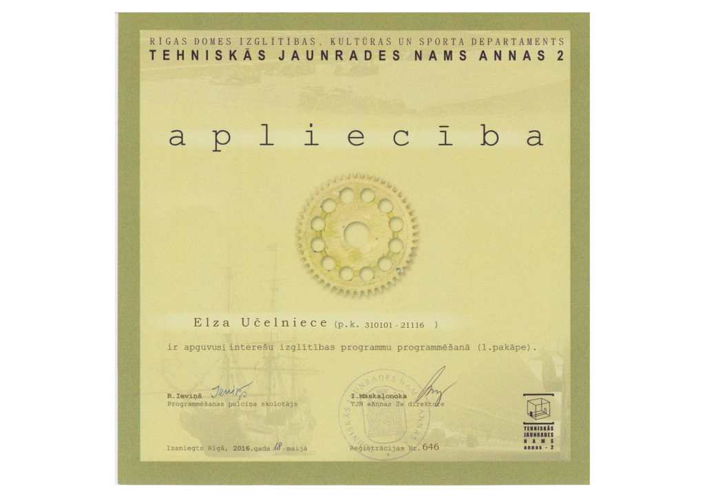 ANNAS 2 PROGRAMMING BASICS 2015 – 2018 Learned the basics of coding on Scratch. Learned C++, C#, Java. Programmed a sumoBOY robot by using Arduino, participated with it in different competitions.